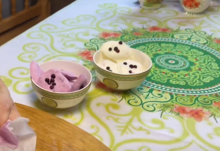 Frozen whipped cream mixed with berries.
