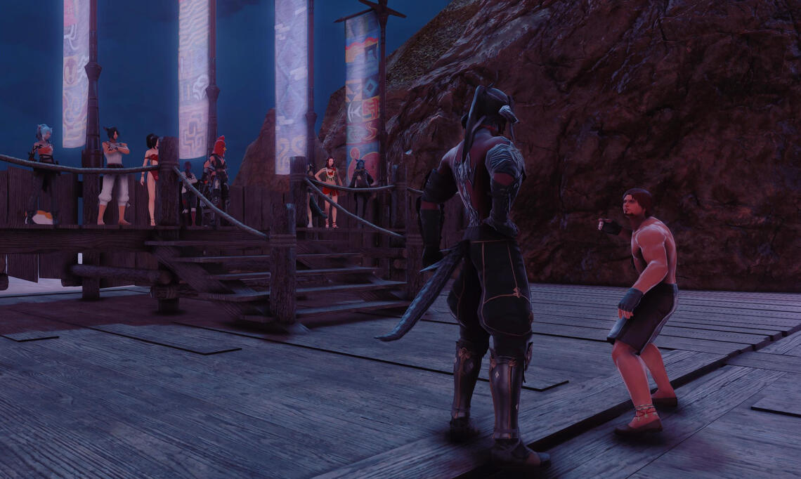 The traditional wrestling of Xaela brought to the beach by Etugen, leader to a group of Hotgo survivors.